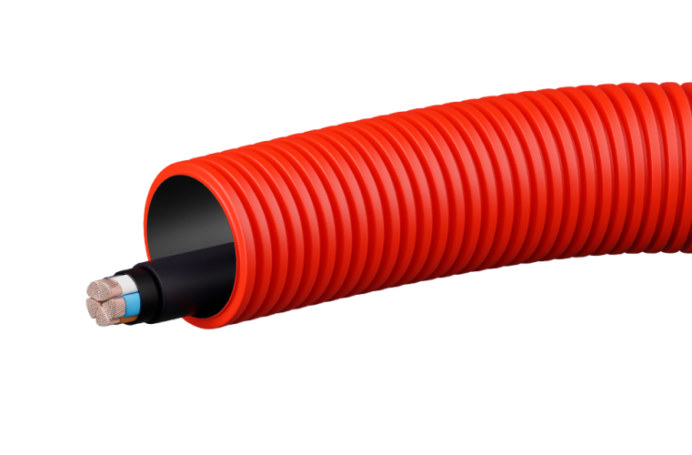 ПЛ КОРН — это двухслойные гофрированные трубы из полимерного компаунда с внешним сигнальным слоем красного* цвета и гладким внутренним слоем, облегчающим процесс протяжки кабеля в трубопроводе.